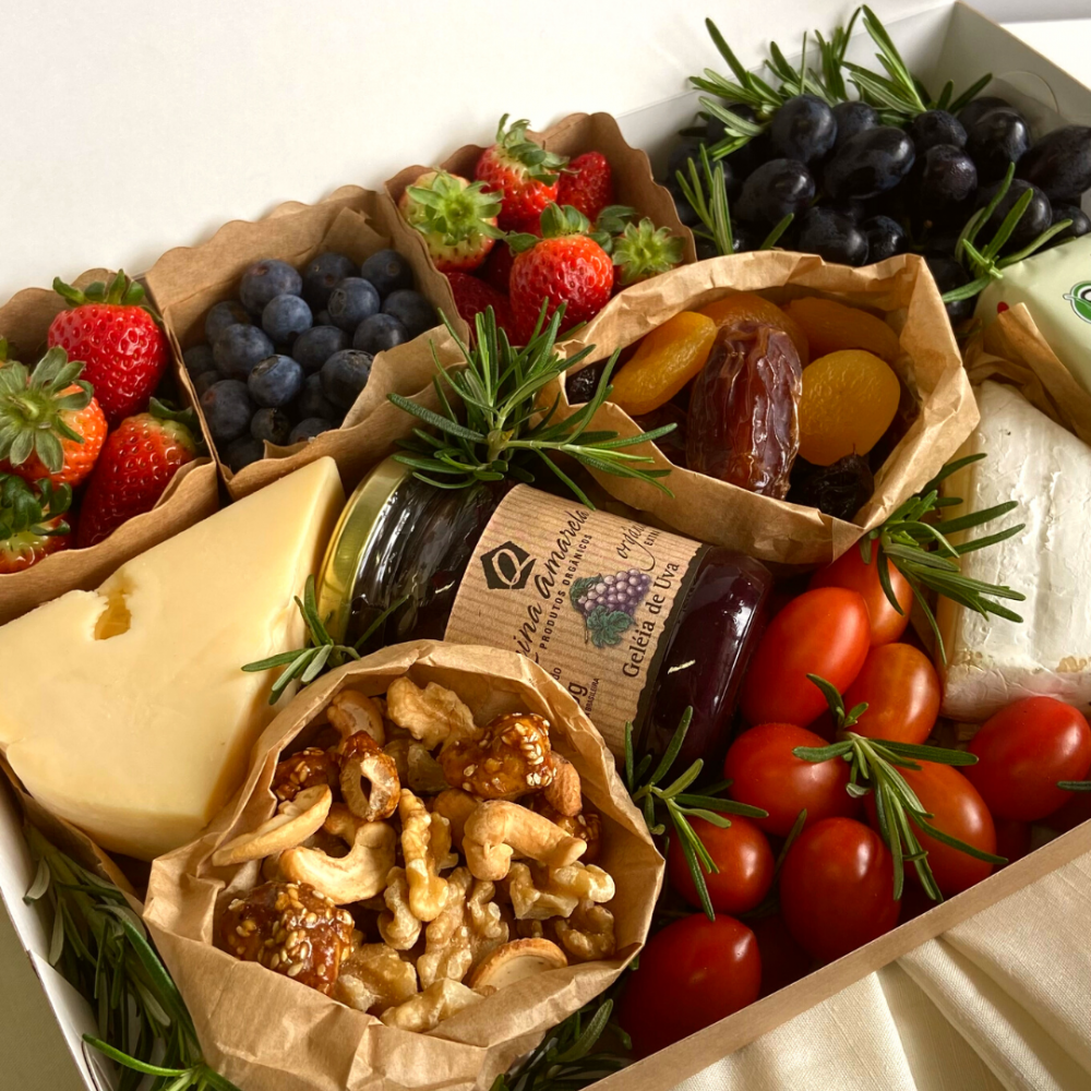 A Cesta natalina inclui: itens da cesta + caixa presenteavél com adesivo + carta personalizável para presente.