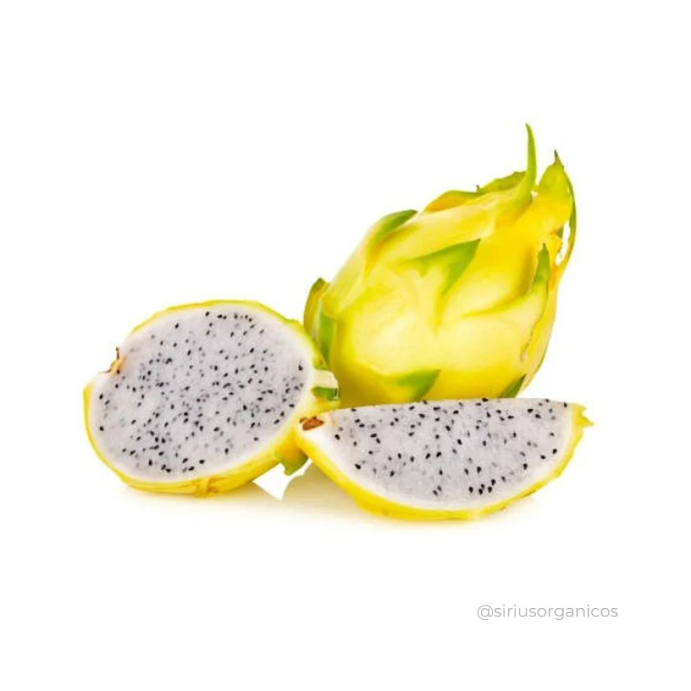 A pitaia golden, da família Cactaceae, também é conhecida como fruta do dragão por conta da casca irregular de gomos escamosos dos frutos. O interior, que pode ser branco ou vermelho com pintinhas pretas, tem aspecto cremoso.